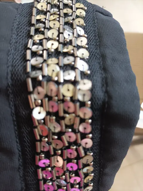 Vestido 929-42. Vestido negro, con fondo, 100% poliéster, adorno a la altura de la cintura.