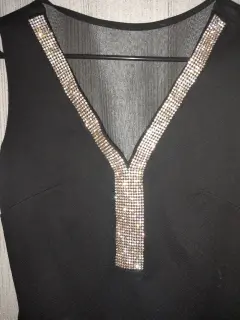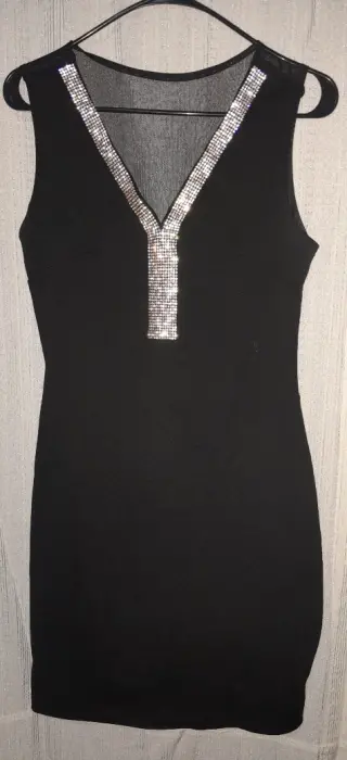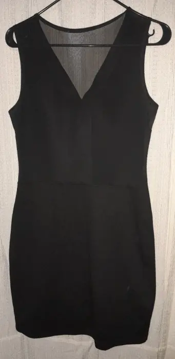 Vestido. Vestido elegante, color negro, con transparencia en la parte trasera