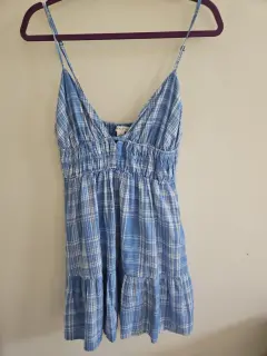 Vestido a cuadros azul cielo. Vestido corto a cuadros azul cielo marca Aeropostale talla S