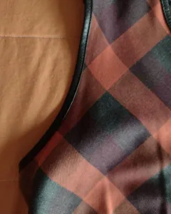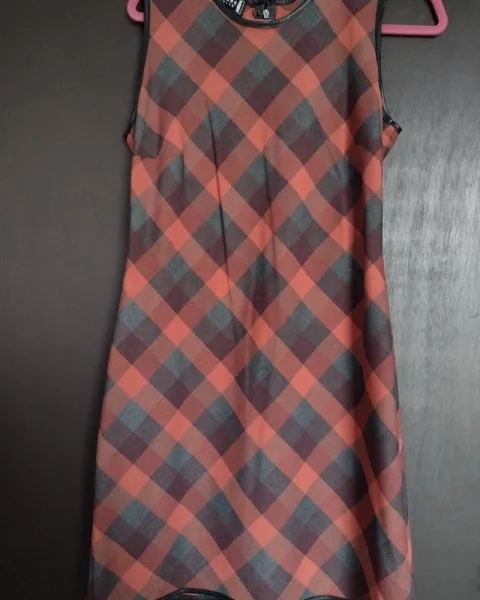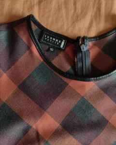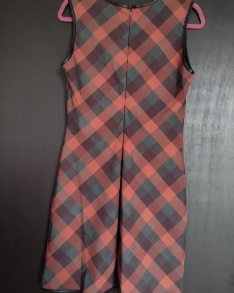 Vestido a cuadros Ivonne. Vestido Ivonne a cuadros color ladrillo con detalles en piel. Con cierre atrás. Queda arriva de la rodilla.