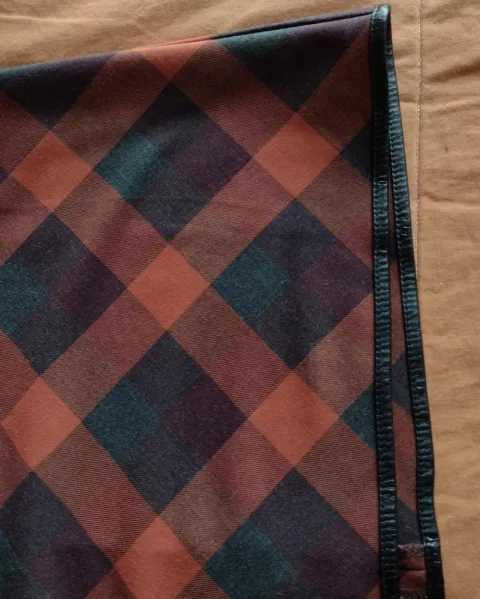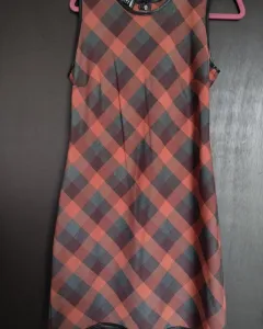 Vestido Ivonne a cuadros color ladrillo con detalles en piel. Con cierre atrás. Queda arriva de la rodilla.