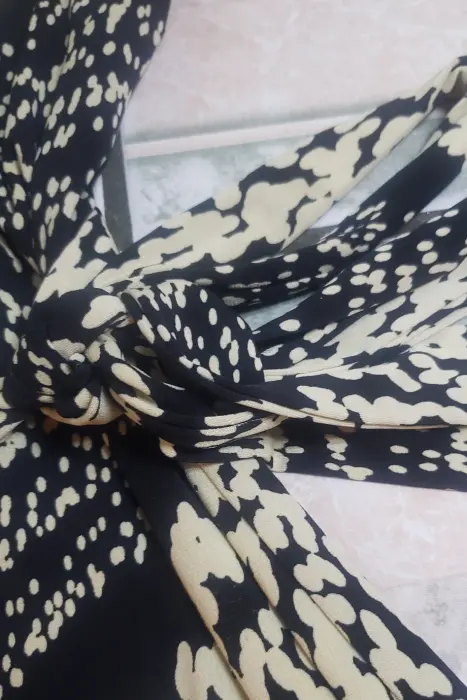 Vestido con una caída de tela preciosa, es tipo licra, estira bastante, se recomienda usar fondo abajo, se amarra a la cintura, cruzado por enfrente súper sexy. Manga tres cuartos, fresco para primavera verano
