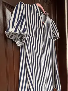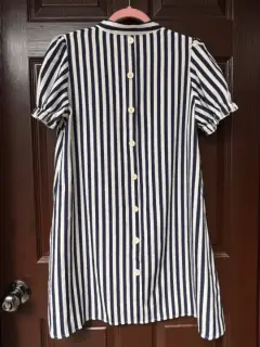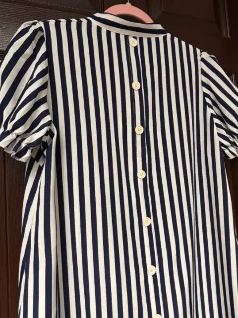 Vestido a rayas en color azul con blanco, tiene botones en la parte de atrás, es talla M de marca Shein