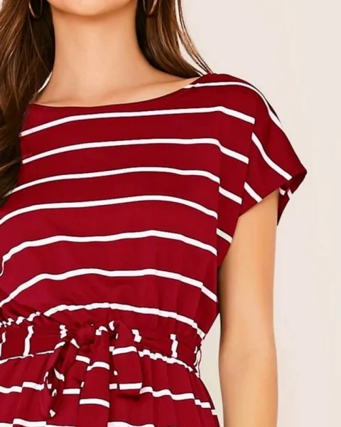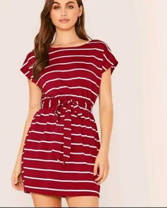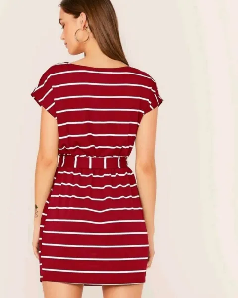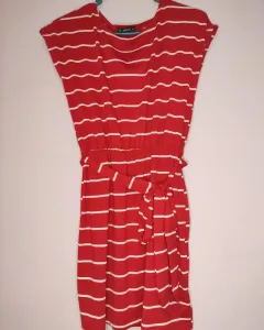 Vestido a Rayas con Cinturón. El color es un poco diferente al de las fotos, pero igual es muy lindo.Es tal strech, estira bastante y está súper fresco.No tiene ningún detalle.