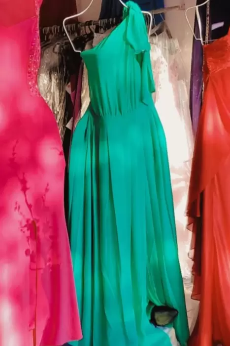 Vestido abierto en pierna. Vestido verde en talla gde, con lazo en hombro derecho bellisimocintura 78Largo desde busto 1.55Elegante y fresco