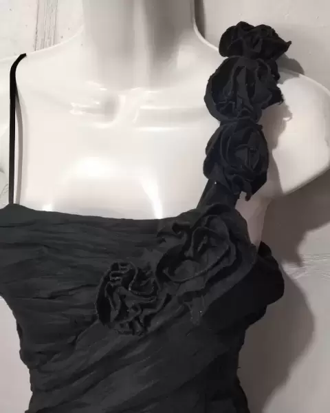 Vestido ajustado decorado con rosas en la parte del pecho y uno de los tirantes. Cierre oculto en la parte de la espalda. Solo se uso una vez.