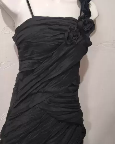 Vestido ajustado corto de fiesta. Vestido ajustado decorado con rosas en la parte del pecho y uno de los tirantes. Cierre oculto en la parte de la espalda. Solo se uso una vez.