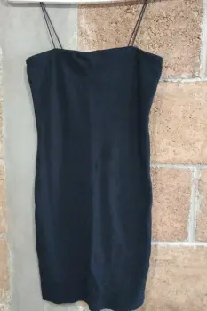 Vestido algodón. El algodón es tipo ralladito, no liso, lleva tirantes estilo cola de rata, redondo elástico.