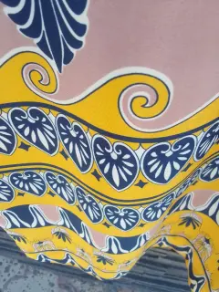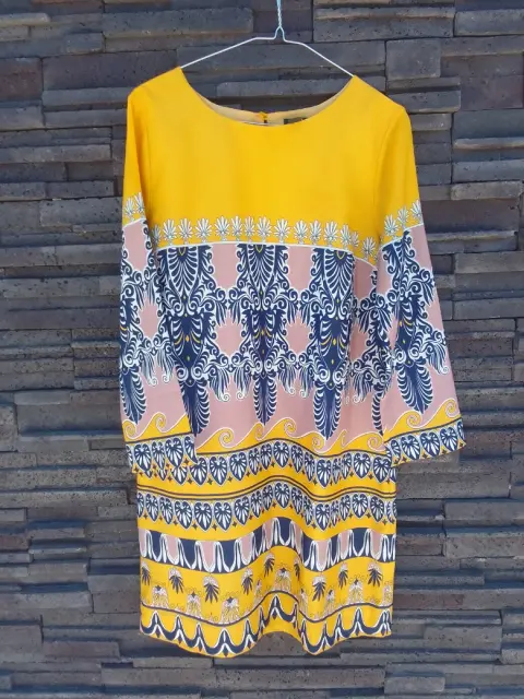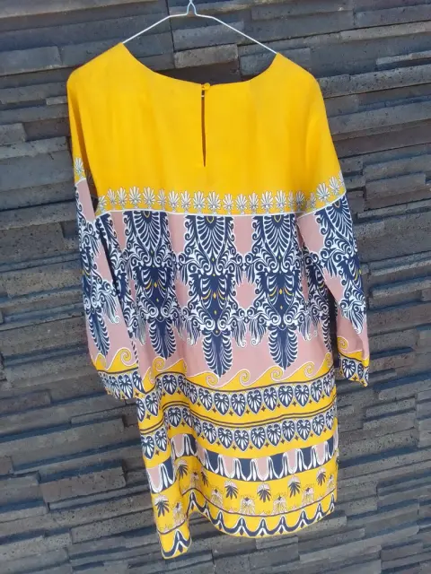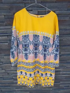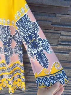 Vestido Amarillo estilo 70's. Vestido formal, ligero de vestir color mostaza. . DIbujos Estilo Otomi. Poliester