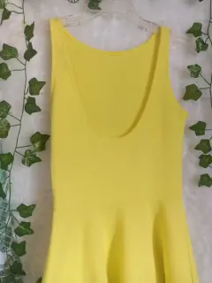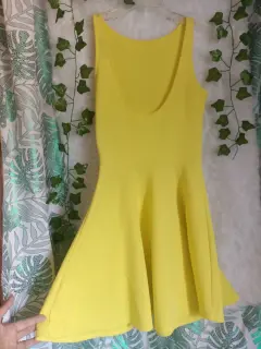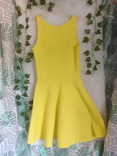 Hermoso vestido amarillo 💛💛💛 luce muy lindo semi nuevo solo se uso una vez no tiene ningún detalle