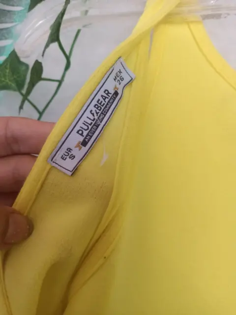 Vestido amarillo pull & beer. Hermoso vestido amarillo 💛💛💛 luce muy lindo semi nuevo solo se uso una vez no tiene ningún detalle