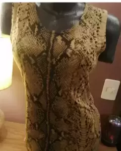 VESTIDO ANIMAL PRINT. Marca : Calvin KleinTalla : ChicaComposición de la tela :POLIÉSTER y spandexSin mangaLargo total : 92 cms.Ancho de axila a axila : 43 cms.Ancho de cadera : 46 cms.Se entrega sanitizado