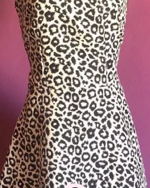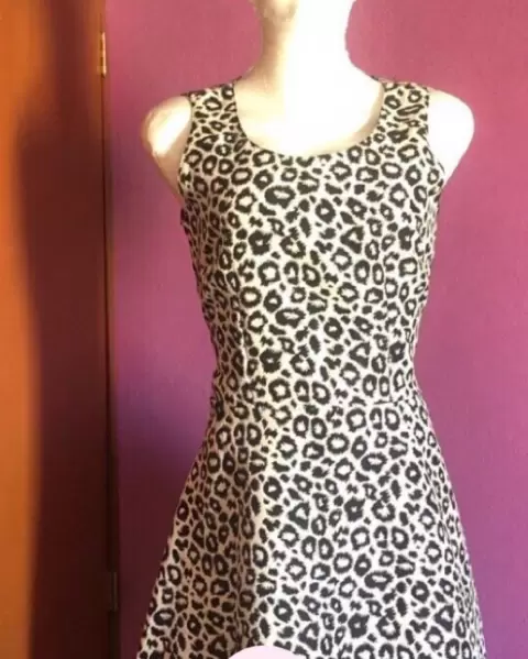 Hermoso vestido animal print falda circular ,sin manga, cuello redondo, cierre oculto. Perfecto para día o noche. Tela de excelente calidad.