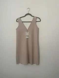 Vestido ante cafe Zara. 📏axila a axila📏cintura📏largoNo estiraNuevo sin detalles