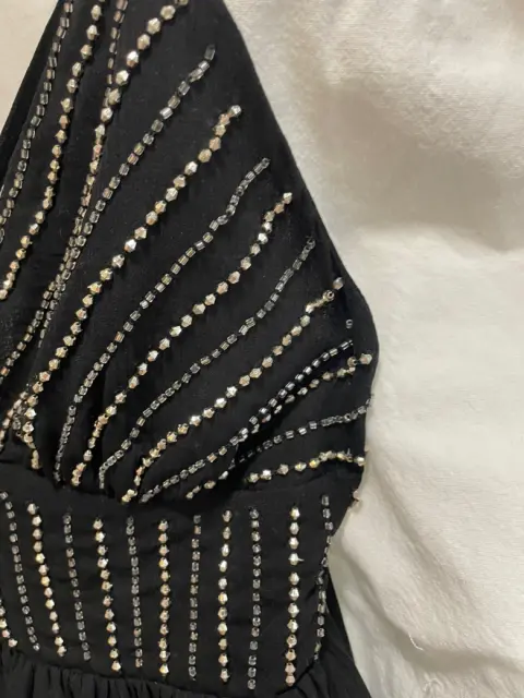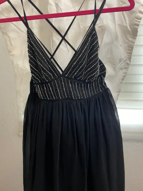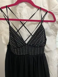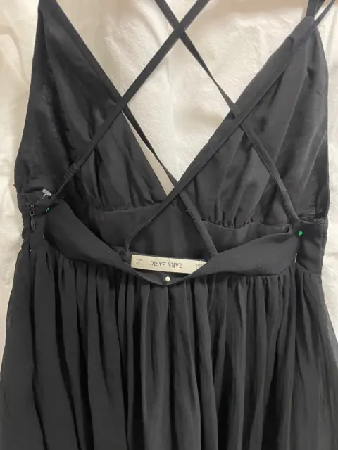 Hermoso elegante y cómodoZara Basic Vestido Negro piedras Color Negro Tirantes Talla SMaterial suave y ligero cierre a un costado Estado Usando una vez Precio 300 Largo