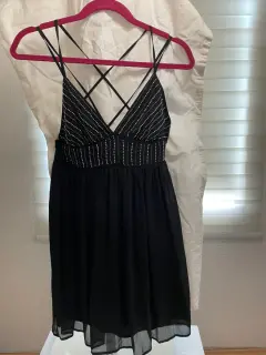 Vestido antro moderno. Hermoso elegante y cómodoZara Basic Vestido Negro piedras Color Negro Tirantes Talla SMaterial suave y ligero cierre a un costado Estado Usando una vez Precio 300 Largo