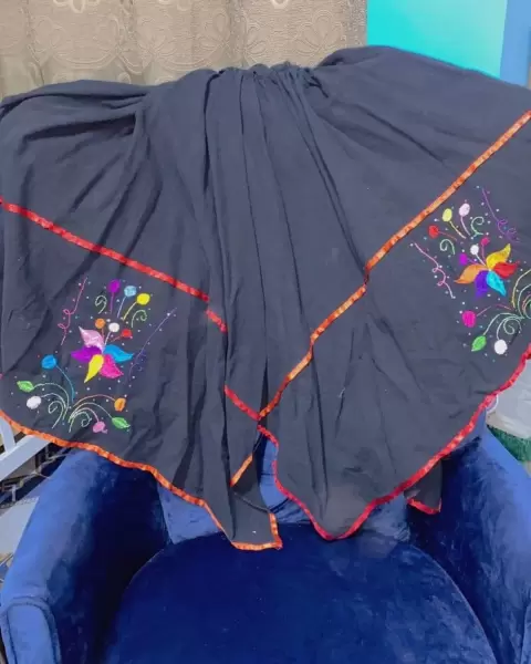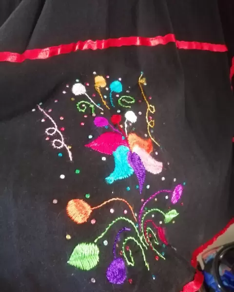 Vestido artesanal. Vestido típico Méxicana bordado a mano con hilo de seda, la falda es de picos con liston rojo, incluye cinturón.