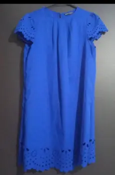 Vestido azul. Bonito veztido casual azul, tela fresca, con detalles de corte son laser en mangas y falda