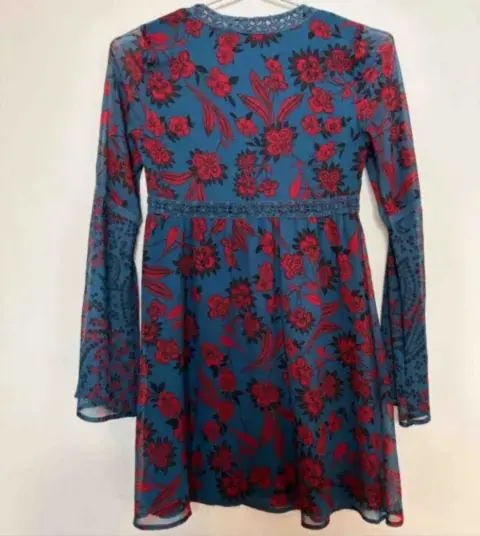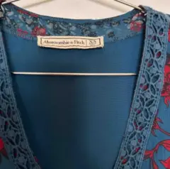 Vestido azul bohemio Abercrombie. Precio vestido en colores azúl y vino, color vivo, talla XS con manga de campana, trae forro abajo y es liviano, cierre en la cintura para amoldar, sin detalles 😃