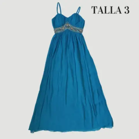 Vestido azul claro, largo con pedreria. Talla 3. Hermoso Vestido NUEVO CON ETIQUETA. Sin detalles ❤️Es necesario lavado y planchado debido al tiempo guardado en almacén.