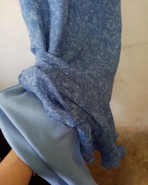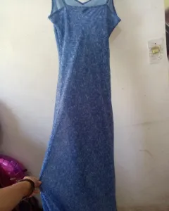 Vendedora con experiencia.Precioso y fresco vestido azul. Queda para s y m, si eres s te quedará poquito holgado, si eres m te quedará tallado. Tiene lindos olanes hasta abajo, yo mido 1.65 y que queda por los tobillos para que lo tengan de referencia. Tiene forro
