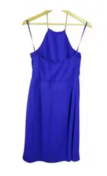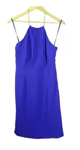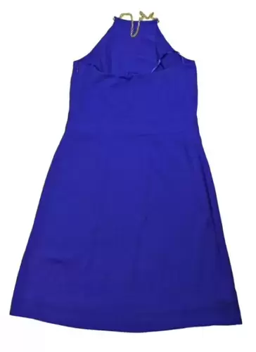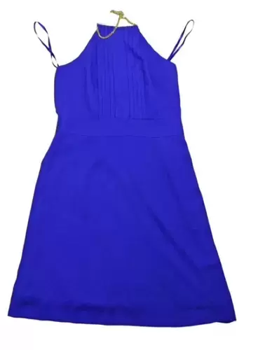 Vestido azul con Cadena en cuello de banana Republic talla 2 l, tiene plisado al frente y espalda descubierta. Tiene cierre al lado. Excelente para primavera verano.