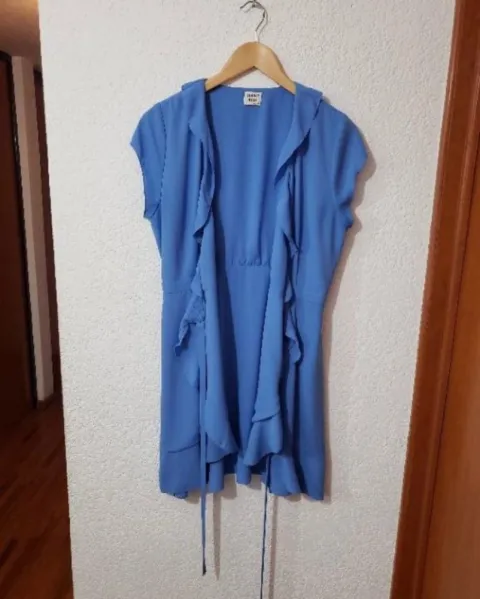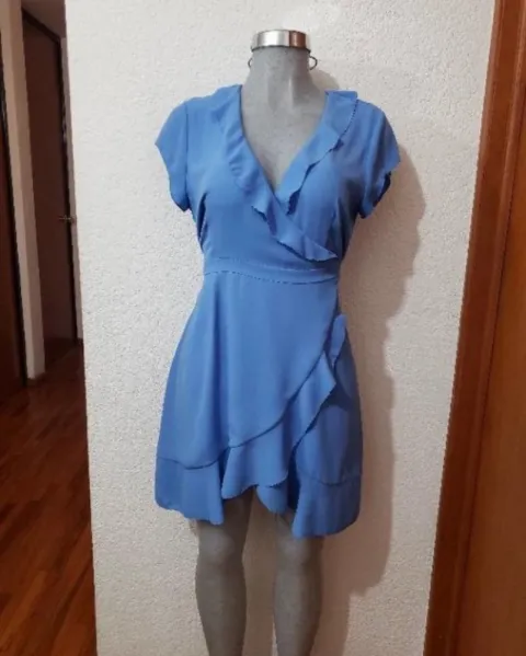 Vestido azul envolvente. Vestido envolvente azul que se ajusta al cuerpo