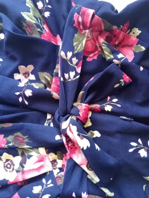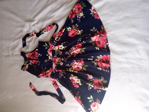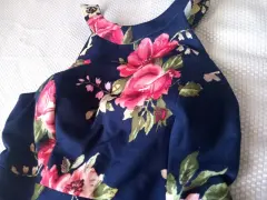 Vestido azul, floreado. Talla mediana, la tela estira para amoldarse al cuerpo. Tiene bolsillos laterales para guardar tu celular. Una puesta. Ancho de cintura 72 CM. Largo del vestido 82 CM. Óptimas condiciones