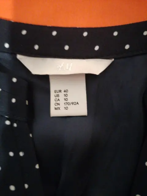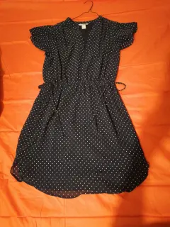 Vestido azul marino con puntos blancos (largo a la rodilla) HMTalla 10Cintas de ajuste a la cintura