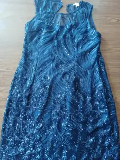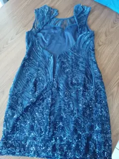 Vestido azul marino coctel , corto talla M. Vestido azul marino, de coctel, forro, con lentejuelas, espalda descubierta, corto, talla M, hermoso, impecable, ajustado al cuerpo