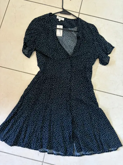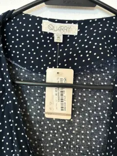 Vestido coqueto y fresco color azul marino con puntos blancos, hace muy bonita forma. Es talla Mediana pero viene reducido. Medidas de axila a axila 41 cm cintura 35 cm largo 80 cm