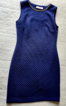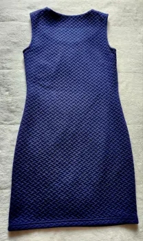 Vestido corto color azul marino mate, con textura en la tela, tela gruesa, estilo casual-formal para oficina .