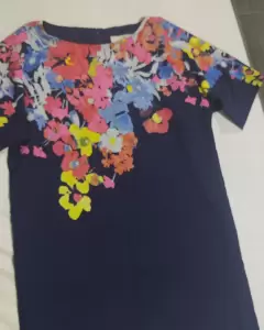 Vestido azul marino y flores. Vestido corto con flores, tela ligera largo arrib de la rodilla