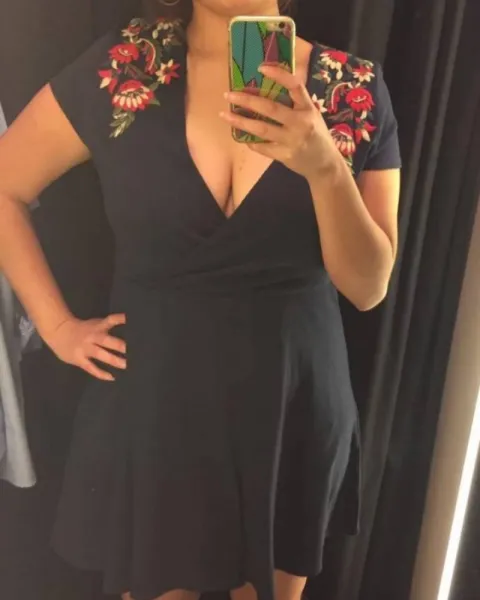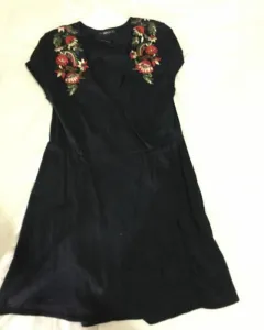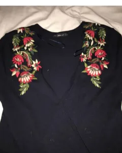 Vestido azul marino zara. Vestido azul marino zara con bordado en hombros cuello en V