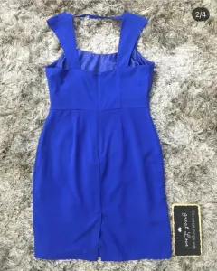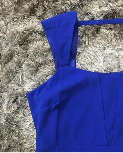 Hermoso vestido azul rey, talla Grande (reducido) le queda perfecto a alguien talla Mediano, largo 96 cm desde el hombro al dobladillo, cierre en la parte posterior, tiene forro.