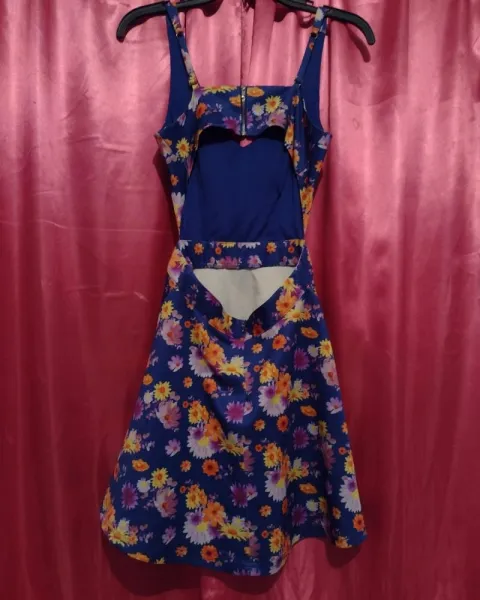 Vestido azul rey con Flores multicolor. Talla chicaCon escote en la espalda.Corte circular