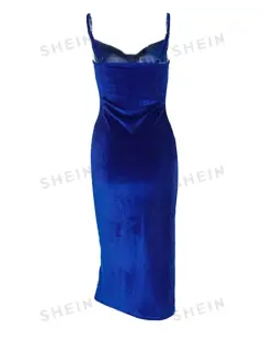 Hermoso vestido azul SHEIN 💙 tipo terciopelo.Talla M Largo: 106.5 cm; pecho 74- 80 cm; contorno cintura: 64 cm; contorno cadera: 81 cm