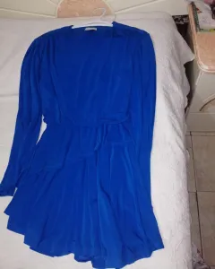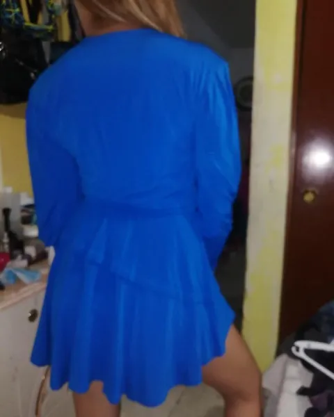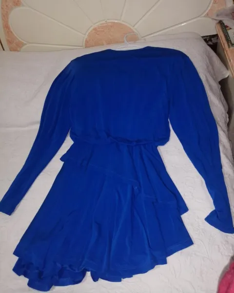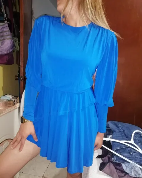 Vestido azul spandex corto!!!. Vestido corto, spandex, manga larga, con olan en la parte de la falda, manga floja de arriba y entubada de abajo!!! Super padre