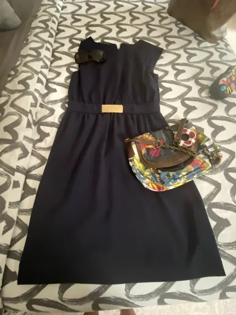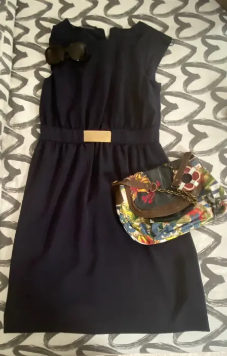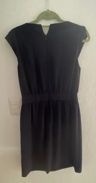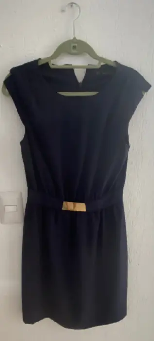 Hermoso vestido azul marino con detalle de cinturón en plata, ajusta perfecto a la cintura. Talla M de Zara. Largo 56cm, cintura 35cm. Nuevo!!