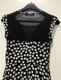 Vestido b y n asimétrico para mujer Dúo Woman. Vestido negro con lunares blancosMarca Dúo Woman Para mujerTalla chica Es asimétrico, corto de enfrente, largo de atrásenfrente tela transparente, lo cual te hace ver muy coquetaLa tela es suaveSe ha usado muy pocas vecesEs ideal para una reunión formal o fiesta.