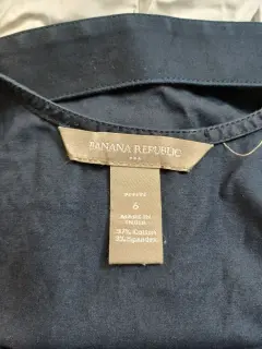Vestido Banana Republic. Vestido color azul marino, sin mangas, cuello redondo, con rayas gruesas horizontales color azul marino y blanca en la parte de la falda, con cinturón color azul, completamente nuevo, talla 6.