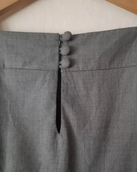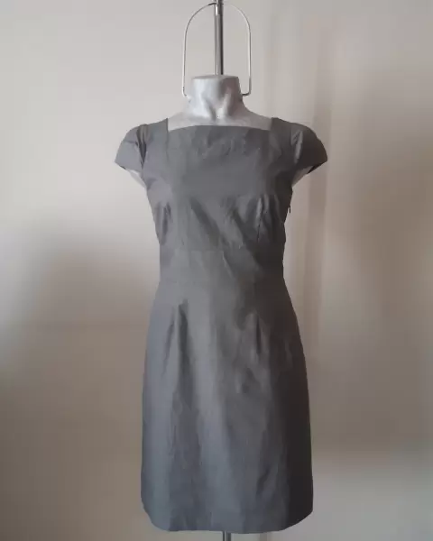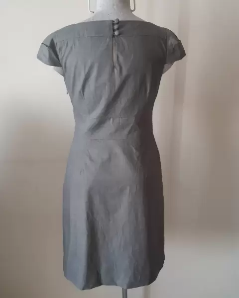 Bonito vestido, Banana Republic, talla 4 petite, color gris, con botones forrados en la parte trasera del cuello, excelente calidad y condicion