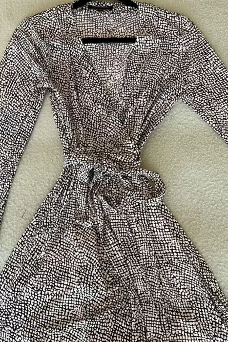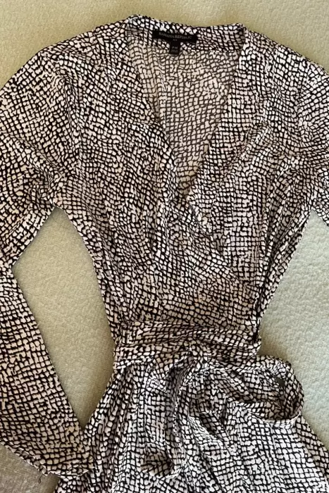 Vestido BANANA REPUBLIC seminuevo (1 sola puesta) talla PM (M Petite) con lazo . Color café con beige. El vestido se cruza y la tela es ajustable.
