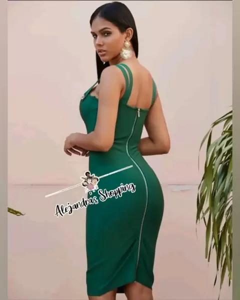 Hermoso vestido bandage verde.. con un coqueto ciper completo en la parte trasera y un diseño elegante en el pecho