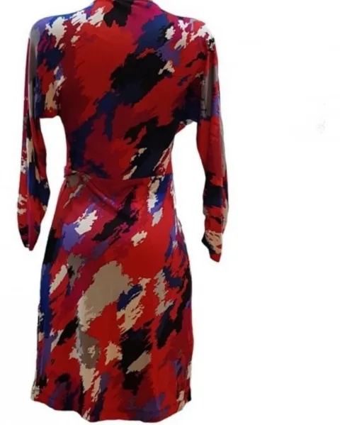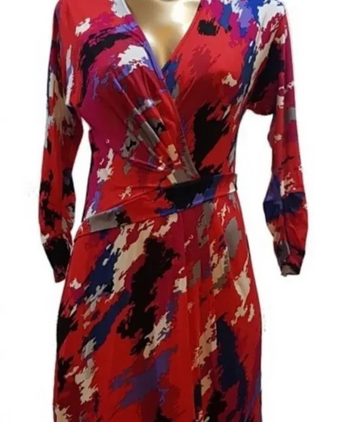 Hermoso vestido envolvente BCBG MAXAZRIA manga 3/4 colores vivos nuevo con etiqueta.