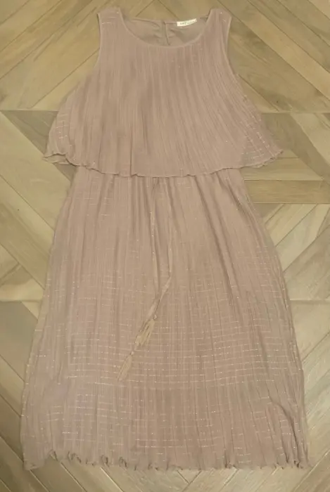 Vestido Beige- Marca Mujer Antigua- Una sola puesta- Talla M- Muy cómodo y fresco- Llega a la pantorrilla - Tiene forro- Elegante y práctico