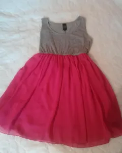 Vestido bicolor rosa con gris sin mangas. Vestido de shifon rosa con algodón color gris corte circular en excelente estado sin usar