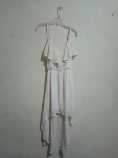 Vestido blanco de gaza y con olanes de encaje , asimétrico ( más largo por atrás ) , súper fresco.