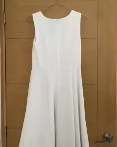 Vestido blanco stretch cuello redondo bordado en blanco y plata en línea A , talla 10 marca CD style