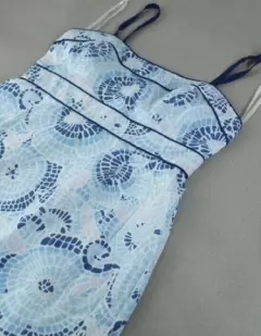 Vestido blanco y azul con tirantes azul obscuro, estampado tipo Talavera súper fresco ideal para temporada.